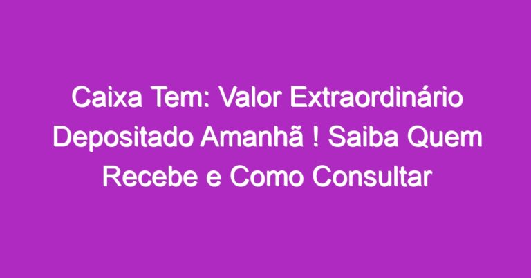Caixa Tem: Valor Extraordinário Depositado Amanhã ! Saiba Quem Recebe e Como Consultar